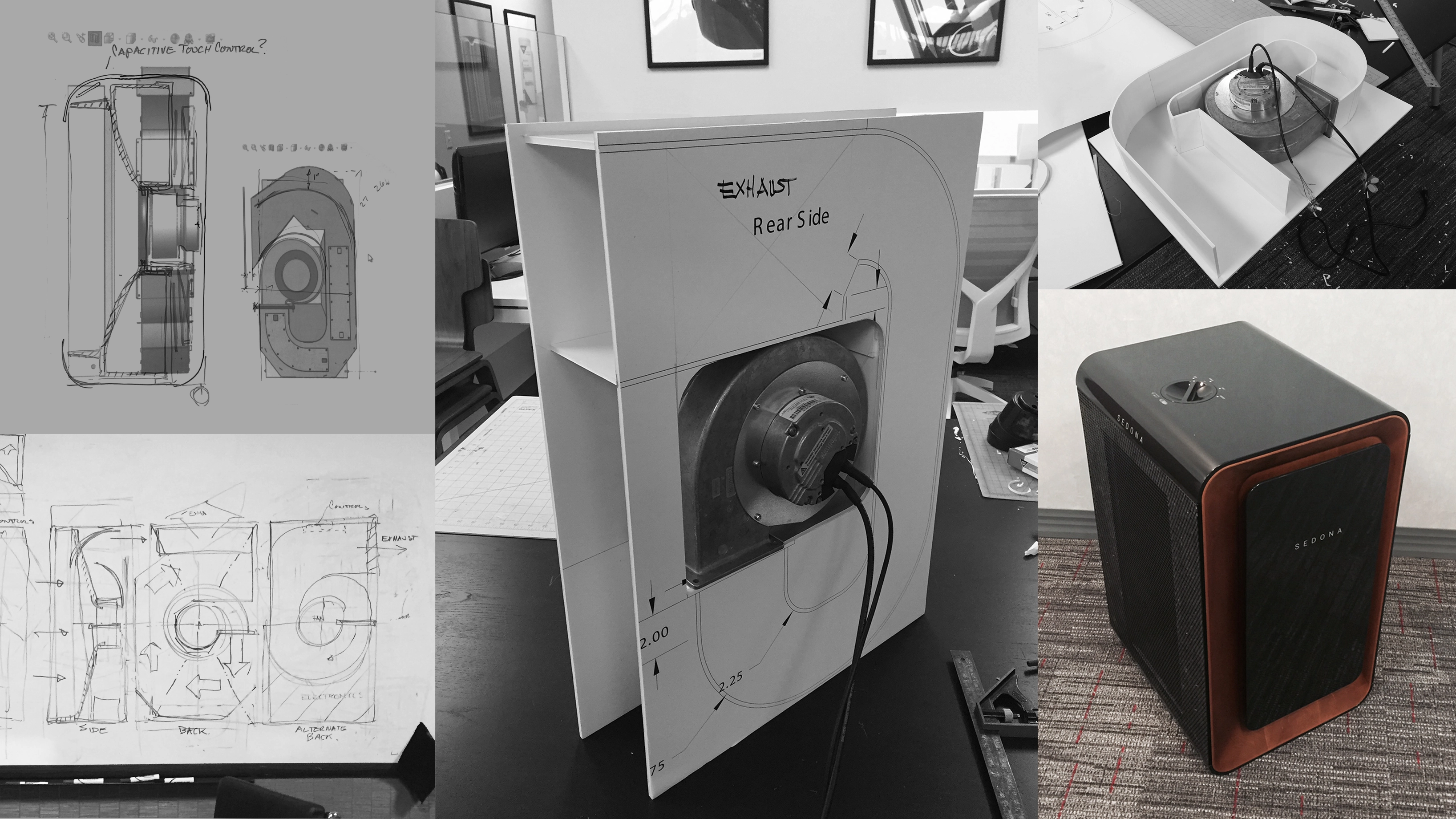 As a trusted partner, our team at Advanced Concept Studio played a pivotal role in supporting AeroClean throughout the product development journey. From requirement definition and concept development to detail design, validation testing and manufacturing support, we collaborated closely with AeroClean to bring the Pūrgo from concept to reality. Our expertise in navigating complex technical challenges and our commitment to innovation were instrumental in realizing AeroClean's vision for the Pūrgo. Building functional bench top prototypes was instrumental to validating the airflow performance prior to laboratory testing. After validating the design we combined dozens of parts into a single robust structural foam injection molded core that integrated the Steriduct and provided mounting locations for all of the components and housings.