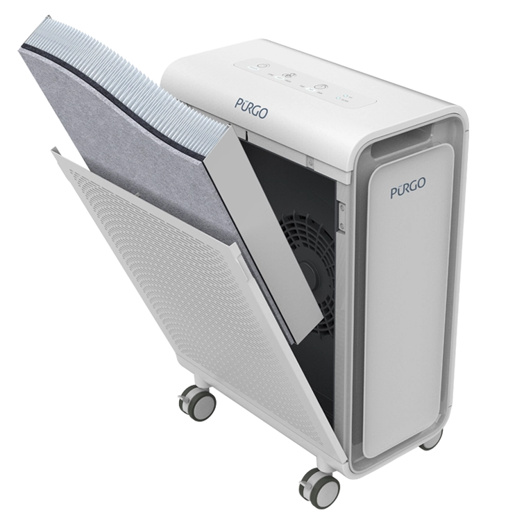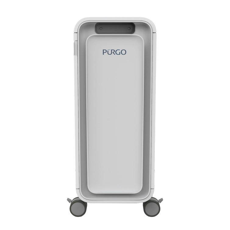 The Pūrgo Medical Grade Air Purifier, a revolutionary solution developed by AeroClean to address the critical need for clean and sterilized air in medical environments. Pūrgo is a high-volume FDA certified air sterilizer, utilizing powerful UV light in a patented "Steriduct" to achieve a 4log kill of pathogens in a matter of minutes. At the core of the Pūrgo lies a fusion of innovative technologies designed to deliver unparalleled air sterilization. The novel Steriduct technology, designed with 99.5% reflective surfaces, efficiently bounces UV light rays to flood passing air with maximum radiation, tearing apart pathogens in milliseconds. This innovative approach, coupled with a high-capacity HEPA filter and VOC pre-filter, ensures comprehensive elimination of airborne contaminants, including bacteria, viruses, and volatile organic compounds (VOCs).