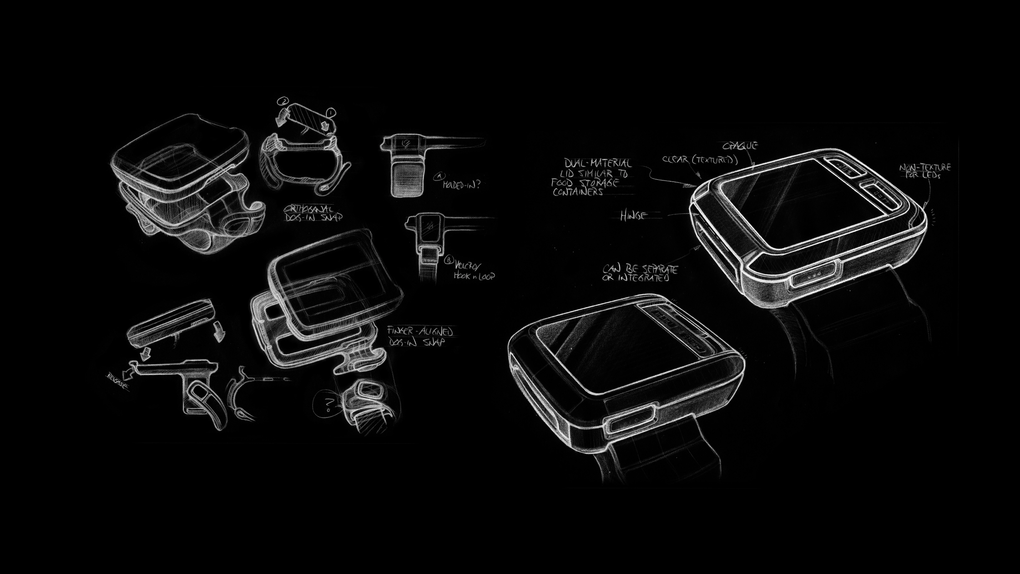 Our design journey for the Zebra WS50 initiated with an intensive brainstorming phase, where we sought inspiration and ideation to address specific challenges such as weight, comfort, and glass protection. This phase laid the foundation for our early sketching, translating conceptual ideas into tangible designs. Early CAD development followed, providing a digital framework for further exploration.